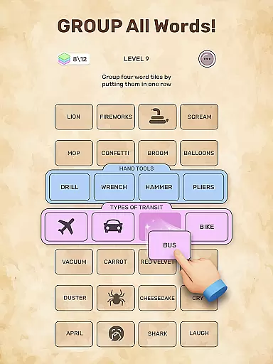 Connect Word stands out with its innovative approach to word puzzles. The game presents players with sets of words that need to be grouped based on associations, which may be scattered across the board. This requires both logic and creativity.