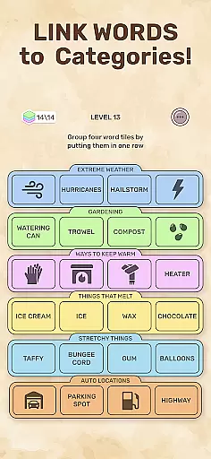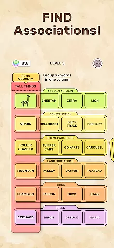 In Connect Word, puzzle variety is achieved through a dynamic level design that introduces new mechanics and themes at regular intervals. Each level presents unique word sets and categories, encouraging players to think creatively and adapt their strategies. This diversity not only enhances replayability but also promotes cognitive flexibility, as players must constantly adjust their approach to solve new kinds of puzzles.