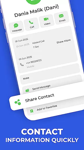 Additionally, the app provides complete contact details in one location and works seamlessly across all major Android devices. With privacy as a priority, it manages your data responsibly, ensuring your personal information remains secure and local to your device.