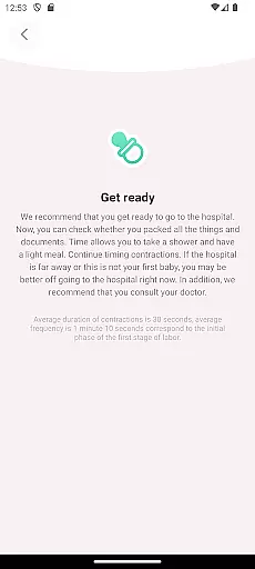 Additionally, Contraction Timer & Counter 9m emphasizes safety by reminding users to always consult with healthcare professionals regarding their specific situation. While the app provides general guidelines based on standard labor indicators, it encourages users to trust their instincts if labor pains become unbearable, even if the contraction metrics don't yet meet typical thresholds.