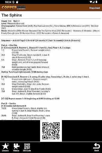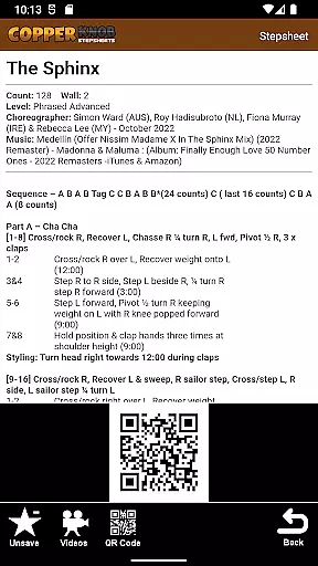 One of the standout features of CopperKnob is its offline functionality. Users can save stepsheets locally on their devices, ensuring they have access to their favorite dances even without an internet connection. Additionally, the app provides lists of the most recent and popular linedances, along with related music and video tutorials, enhancing the learning and dancing experience.
