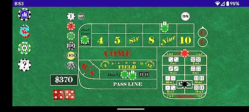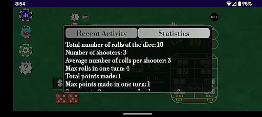 The application provides extensive statistics tracking, allowing players to follow dice and point metrics throughout their gaming sessions. These include points made, max points achieved, lucky sevens versus seven outs, and more. Such comprehensive data offers insights akin to those one might receive from a live dealer, enriching the strategic aspect of the game.