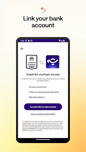 With bank-level encryption, Credit Genie ensures that user information is safe and secure. The service charges a biweekly Bank Connection Fee of $4.99 to maintain the account connection, which can be stopped by disconnecting the bank account. This app is not available in all states and has specific eligibility requirements for cash advances.