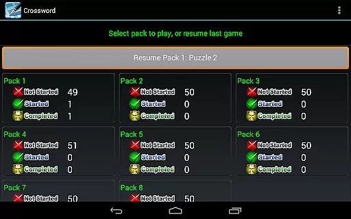 Unique functionalities include cheats and answer checking, which help users progress through difficult puzzles. Sharing options enable players to send clues via email, Twitter, Facebook, and more, adding a social element to the game. The Resume button and customizable preferences, such as highlighting mistakes and greying out completed clues, further enhance usability.