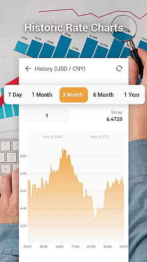 In addition to real-time updates, the app offers historical rate charts spanning from one week to one year. These charts allow users to analyze trends and make informed predictions about currency movements. The built-in search function makes it easy to find specific currencies quickly, while the calculator feature provides instant results in local currencies.