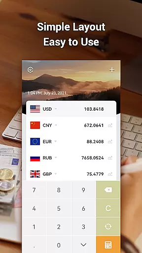 The app's user-friendly interface allows for easy navigation and quick access to important features. Users can set up a personal list of currencies, view historic rate charts, and utilize a simple calculator for conversions, all within a few taps.