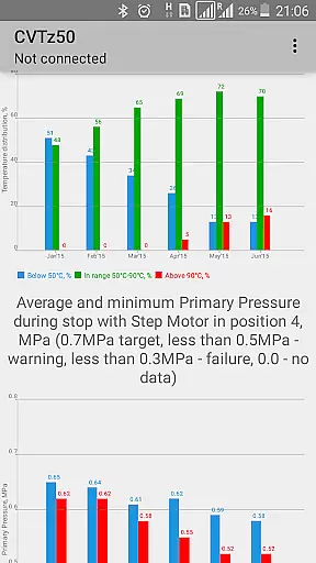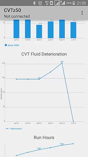 CVTz50 goes beyond basic diagnostic functions by maintaining monthly statistics on transmission health. The application tracks temperature conditions, pressure patterns, mileage accumulation, and fluid deterioration rates. These historical records help identify emerging issues before they become major problems, potentially saving users significant repair costs.