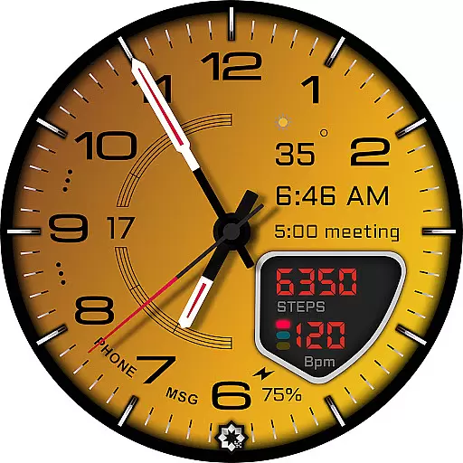 This level of integration extends to health data as well. The watch face displays real-time steps, heart rate, battery status, and date, all optimized for Wear OS 3.5 and above. Such features ensure that users have critical information at a glance, enhancing both convenience and lifestyle management.
