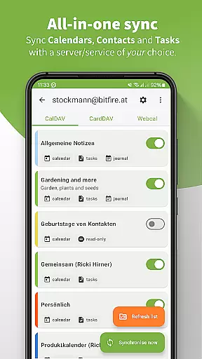 DAVx⁵ is a comprehensive productivity app designed for seamless synchronization of contacts, calendars, tasks, and WebDAV files. This all-in-one solution supports CalDAV, CardDAV, and WebDAV protocols, making it compatible with numerous services like Nextcloud, iCloud, and Synology. The app offers two-way synchronization between the server and client, ensuring your data stays up-to-date across devices.