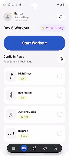The app's standout feature is its integration of Islamic elements into fitness routines. Users can follow structured workout plans while tracking prayer times and accessing religious content including duas and hadiths.