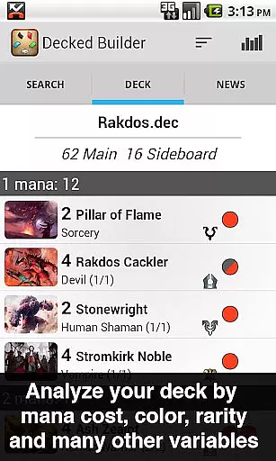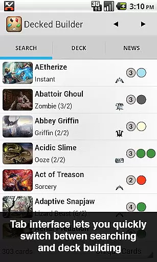Decked Builder stands out with its robust set of features designed specifically for MTG players. One of its core strengths is the ability to search for cards instantly without an internet connection, thanks to a locally stored database. Users can filter searches by card expansion, rarity, color, type, or cost, making it easy to find exactly what they need. The app supports various tournament formats such as Standard, Modern, and EDH, catering to different playstyles.