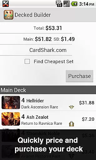 Beyond deck building, Decked Builder excels in offering extensive pricing options from various suppliers like TCGplayer.com and CardShark.com. Users can easily find the most cost-effective way to complete their collections and purchase cards directly through the app. Additionally, it features RSS feeds from leading MTG content providers, enabling users to stay updated with the latest strategies and winning decks. Whether you're a casual player or a competitive enthusiast, Decked Builder enhances your MTG experience by combining powerful tools with high-definition card art scans.