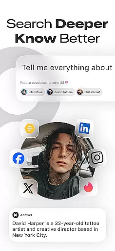 The app aggregates publicly available information from social media platforms, professional networks, and other online sources. This aggregation includes personal profiles, professional backgrounds, images, videos, and more, all accessible through a single search interface. Such wide-ranging data collection allows users to gain insights into both personal and professional spheres.