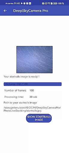 One of the standout capabilities of DeepSkyCamera Pro is its photo live stacking function, which works with both tracked and untracked images. This feature enables users to stack multiple images in real-time, enhancing the clarity and detail of their astrophotographs. Additionally, the app supports various formats including RAW and JPEG, and outputs stacked results in TIFF or JPEG, depending on the input format. Users can also create animated star trails and timelapse videos in mp4 format, utilizing codecs such as AVC and HEVC.