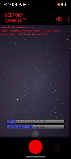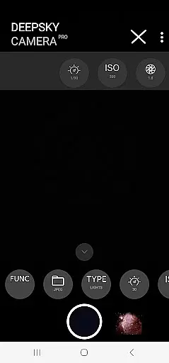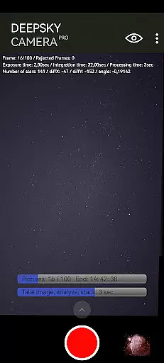 DeepSkyCamera Pro stands out with its robust set of features tailored specifically for astrophotography enthusiasts. At the core of its functionality is the ability to capture photos of the night sky with long exposure times, akin to traditional astrophotography methods using DSLR or specialized cameras. This feature allows users to take high-quality images in RAW format, which can be further processed using well-known stacking software.