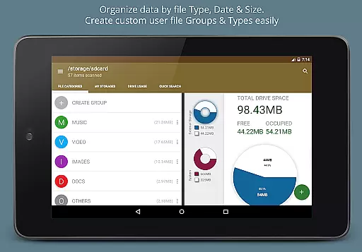 Disk & Storage Analyzer [PRO] excels in core task management by offering users a comprehensive suite of tools to monitor and manage their device's storage effectively. The application provides detailed insights into file usage, categorizing data across various storage mediums such as SD cards, USB devices, and internal storage.