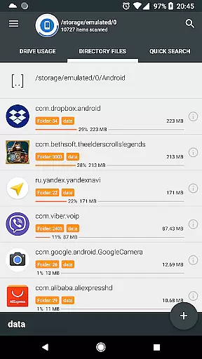 Disk & Storage Analyzer [PRO] stands out with its robust feature set tailored for storage management. The app's primary strength lies in its ability to generate detailed file usage reports and visualizations. Using sunburst charts, users can explore nested folder structures and identify large files quickly. This visualization approach provides an interactive way to navigate through directories and subfolders.