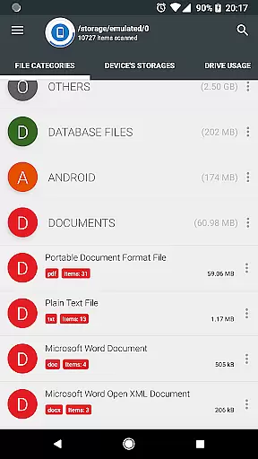 Another key feature is the global search functionality, which indexes files on both device and cloud storage. This allows users to find files rapidly through categorized searches or direct queries. Additionally, the app offers practical tools for managing installed applications, including cache cleaning and app removal options. These features, combined with cloud integration and customizable file categorization, make Disk & Storage Analyzer [PRO] a versatile solution for maintaining optimal device performance.