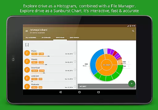 With its ability to display information through infographics, including pie charts and sunburst diagrams, the app simplifies complex data sets, making it easy for users to understand their storage consumption patterns. This graphical representation is crucial for identifying which files or categories are consuming the most space.