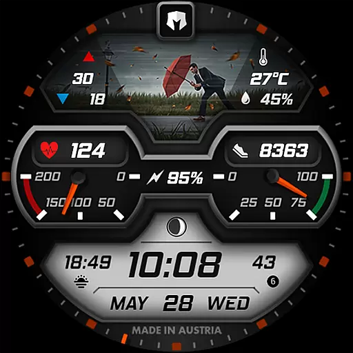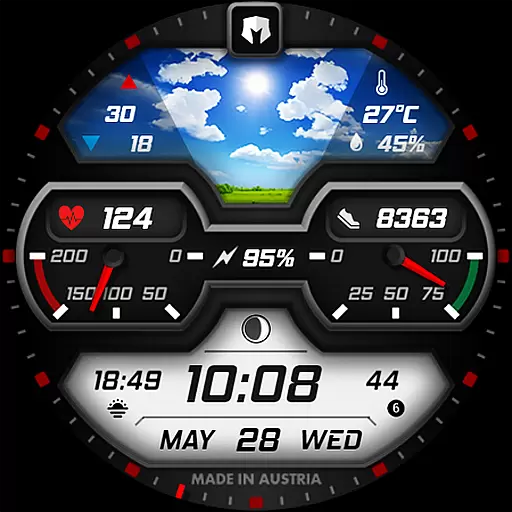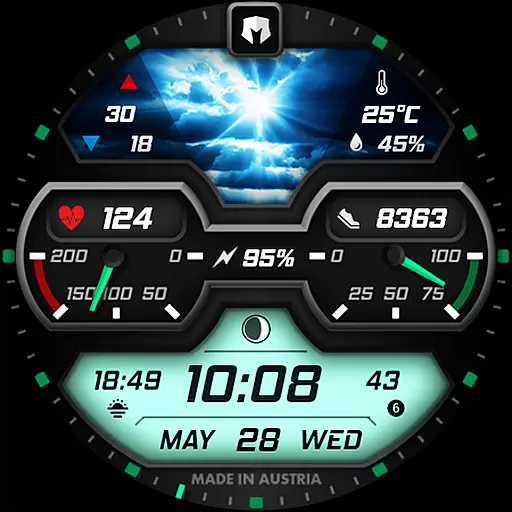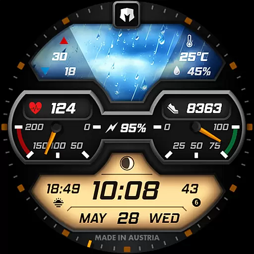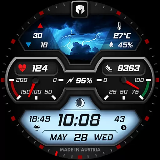 The watch face stands out with its dynamic weather display that changes based on actual weather conditions, day or night status, and includes temperature ranges alongside precipitation chances. With nearly 30 different weather images and multiple color combinations to choose from, users can personalize their experience while enjoying comprehensive data at a glance. This makes it ideal for tech-savvy individuals who value both style and substance in wearable technology.