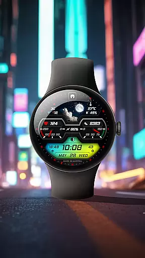 DM148 Vibrant Futuristic Face is a feature-rich watch face designed for Wear OS 5+ devices. Developed by Dominus Mathias, this application transforms your smartwatch into a vibrant personal assistant with an emphasis on both aesthetics and functionality. The design incorporates essential complications such as digital time, date details, health parameters, battery status, customizable features, and weather indicators.