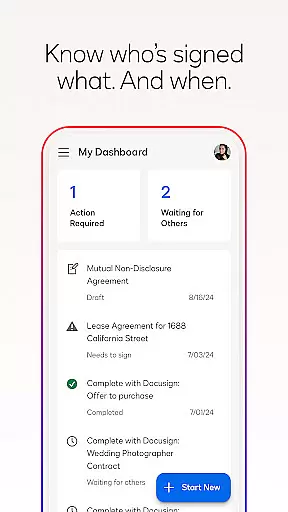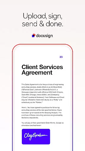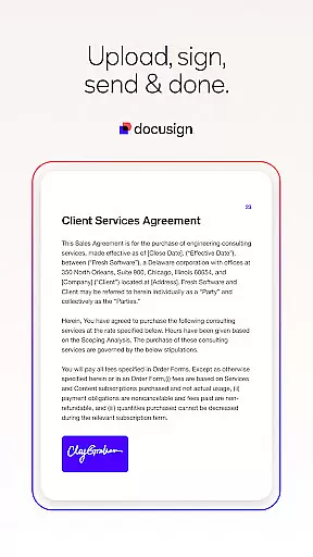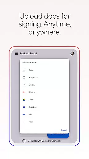 Docusign offers a comprehensive suite of features designed to simplify and secure the agreement process. The app allows users to create customized digital signatures directly on their devices and upload documents easily from various sources such as email, cloud storage services, or by scanning physical documents. Its responsive signing functionality automatically adapts documents for optimal viewing on any device, ensuring a seamless experience for all parties involved.