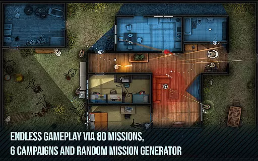 A standout feature of Door Kickers is its focus on planning and execution. Players can pause the game at any moment to issue commands, adjust strategies, and adapt to evolving scenarios. With over 80 single missions, 6 campaigns, and unlimited gameplay via a mission generator, the game provides extensive replayability. Whether you're strategizing through non-linear levels or experimenting with over 65 weapons and gear items, Door Kickers delivers both depth and challenge, making it ideal for fans of tactical gameplay.