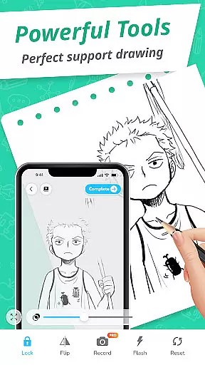 At the core of this app is its powerful AR cartoon drawing capability, which allows users to incorporate real-world elements into their sketches through their device's camera. This feature is complemented by advanced options such as recording video, taking photos, adjusting opacity, controlling the flashlight, and locking or resetting your work.