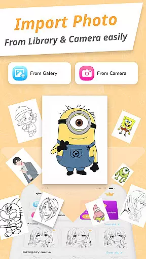 Draw Cartoon stands out with its powerful AR-based drawing capabilities. The app's main feature is its ability to project images onto real-world surfaces through the device's camera, allowing users to trace and draw with precision. The adjustable opacity function helps artists create more realistic sketches by controlling the transparency of the projected image.