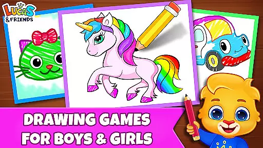 Perfect for both home and classroom settings, Drawing Games: Draw & Color encourages creativity and cognitive development. By offering a rich selection of stickers, crayons, and glowing pens, it keeps kids entertained for hours while they learn through various drawing and coloring activities.