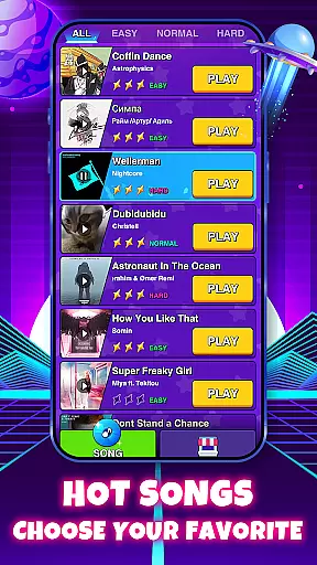 The game's intuitive touch controls make it easy to pick up but challenging to master. Players can unlock and choose from various characters, each with unique designs and animations. Regular updates bring new content, ensuring the game stays fresh and exciting for the community of music gaming enthusiasts.