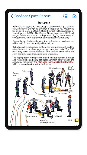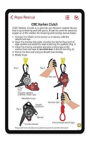 DRR Rescue stands out with its robust set of features tailored for technical rescue operations. The app includes a multimedia-enhanced Field Operations Guide, offering 240 pages of high-quality illustrated rescue procedures. Each procedure is categorized by Awareness, Operational, and Technician standards, ensuring clarity for users at all skill levels.