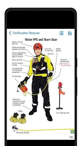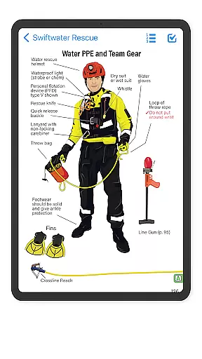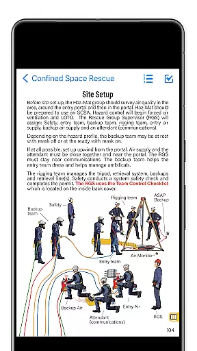The app offers an intuitive navigation system that allows quick access to specific procedures. It also features specialized tools such as trench calculators, cut-list generators, and time-tracking command checklists. These resources are regularly updated and comply with NFPA 1006 standards, making it an essential reference tool for all levels of rescuers.