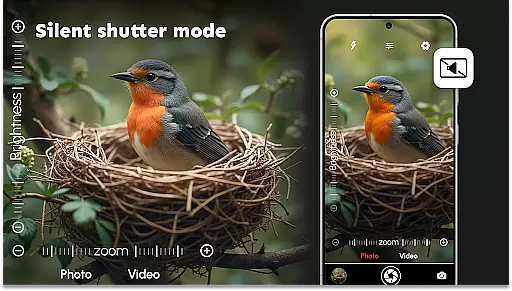 Other notable features include a silent shutter option for discreet shooting, support for multiple video resolutions, and precise zoom keys for detailed compositions. These robust functionalities make DSLR HD Camera an indispensable tool for anyone looking to achieve professional-level results directly from their smartphone. Whether you're an aspiring photographer or a seasoned pro, this app offers everything needed to take your mobile photography to the next level.