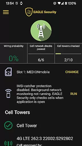 EAGLE Security UNLIMITED is a comprehensive mobile security application designed to protect users from various privacy threats through cell networks. The app provides robust protection against spyware, IMSI catchers, and other potential vulnerabilities.