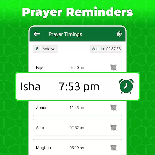 This app allows users to configure multiple types of reminders tailored specifically for Islamic practices. For instance, users can set up alarms that notify them when it's time for each of the five daily prayers. Additionally, special reminders can be established for significant events like Ramadan, providing timely alerts for Suhoor and Iftar.