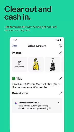 eBay online shopping & selling is a comprehensive mobile marketplace that enables users to buy and sell millions of items conveniently. The app provides real-time alerts on deals, auctions, and order updates through personalized push notifications, ensuring you never miss an opportunity. With its AI-powered listing feature, sellers can quickly generate detailed descriptions by simply uploading a photo.