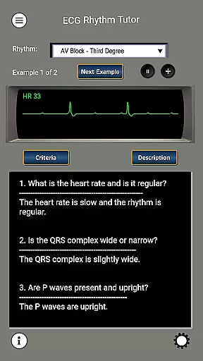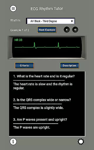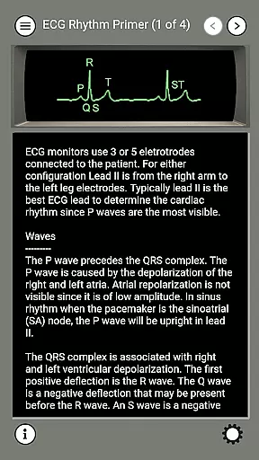 ECG and ACLS Tutor offers several distinctive features that set it apart from other medical training applications. The app includes an innovative ECG Rhythm Primer that systematically teaches users how to identify cardiac rhythms through a structured four-step method. This foundational knowledge is then reinforced through the Rhythm Tutor module, which employs an organized question-based approach to rhythm identification.