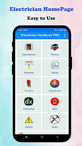 Electricians' Handbook PRO offers a comprehensive digital library tailored for electricians and electrical engineering enthusiasts. The application contains an extensive collection of articles and topics that cover the fundamentals of electricity and its practical applications. With four main sections - Theory, Calculators, Wiring Diagrams, and Quizzes - users have access to a wealth of knowledge at their fingertips.