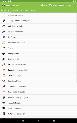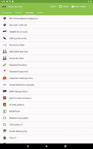 In the realm of electronic tools, Electrodoc Pro excels with an interface that marries simplicity with intuitiveness, making it accessible even to those new to electronics. Upon opening the app, users are greeted with a straightforward layout where each tool and reference is easily accessible, reducing the learning curve typically associated with specialized software.