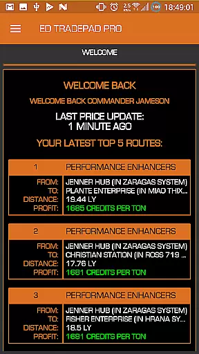 Elite Dangerous TradePad Pro stands out with its powerful route calculator that suggests optimal commodities to trade at specific stations. The app supports various route calculations including loop routes, multi-hop routes, and localized area loops. Traders can save these routes for offline use, ensuring they have access to critical information even without an internet connection.