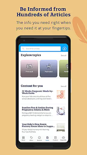Enfamil stands out with its diverse range of features tailored for expecting and new parents. The app's home screen allows you to browse weekly curated content and bookmark important articles for future reference. You can personalize your experience by accessing your profile and adjusting preferences to suit your needs.