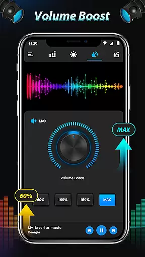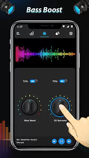 Equalizer & Bass Booster Pro stands out with its robust feature set tailored for audiophiles. The app includes a precise five-band equalizer that lets users fine-tune specific frequency ranges, ensuring balanced and rich sound output. Additionally, the bass boost effect adds depth and power to low frequencies, making every beat resonate with energy.