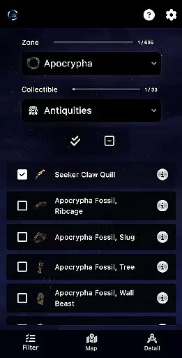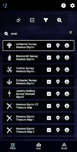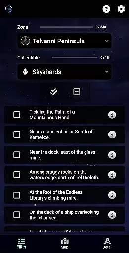 ESO Surveyor stands out with its robust feature set tailored for The Elder Scrolls: Online community. The app provides comprehensive mapping capabilities, allowing users to visualize item locations across all game zones, including DLC areas. Its unique tracking system enables players to monitor their progress through various collectibles and activities, from Mages Guild books to Antiquities, with specialized cooldown tracking for dungeon fragments.