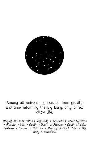 Users can learn about scientific and philosophical concepts while experiencing visually stunning cosmic events. Every choice made within the app influences the delicate balance between matter, time, and possibility.