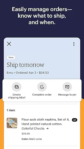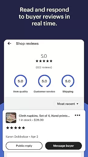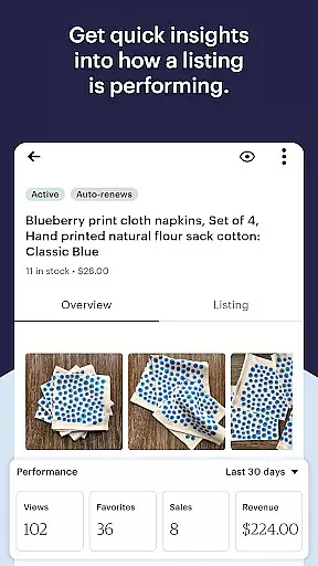 Whether you're responding to customer inquiries, updating product listings, or checking sales performance, Etsy Seller streamlines these tasks through an intuitive mobile interface. This ensures that Etsy shop owners can focus more on growing their business rather than getting bogged down by administrative tasks.