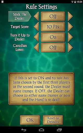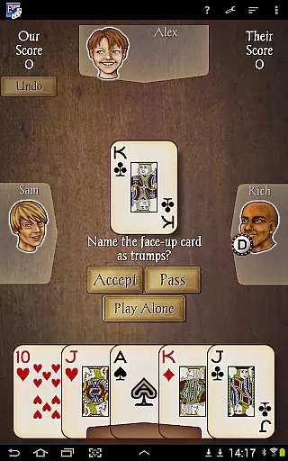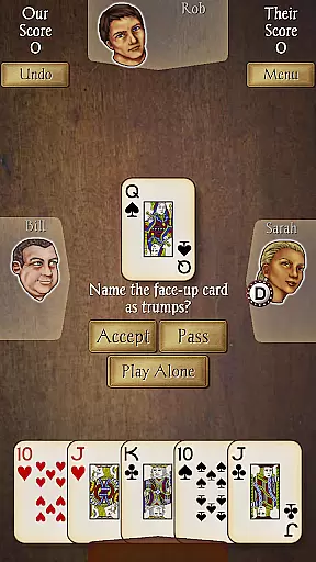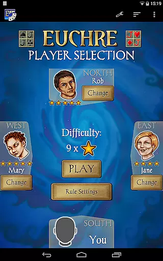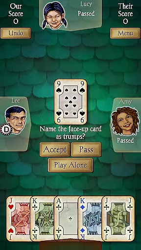 Euchre Pro stands out with its diverse range of features that cater to both casual and serious players. The app includes 18 distinct CPU player profiles, each with varying skill levels and playing styles, allowing users to customize their gaming experience by choosing partners and opponents. Advanced rule options like Stick the Dealer and Canadian Loner provide additional strategic depth, while three different card decks and customizable backgrounds let players personalize their game environment.