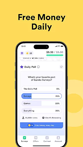 Eureka's primary feature set includes paid surveys, daily polls, and brand check-ins, each designed to cater to distinct user interests and schedules. This diversity in earning methods demonstrates the app's commitment to covering a wide array of lifestyle needs and preferences.