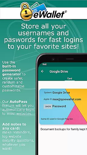 eWallet further enhances task management through its auto-locking feature and random password generator, which together ensure that users' wallets are not only organized but also secured against breaches. The convenience of accessing all essential information within a single app streamlines the user's digital life.