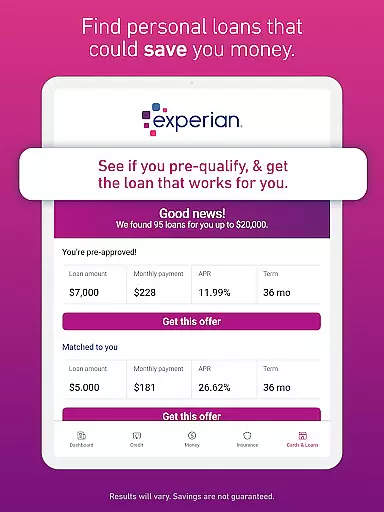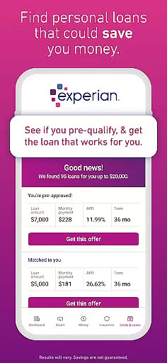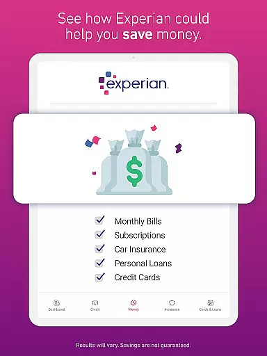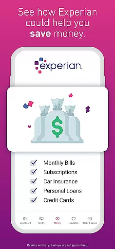 The app also offers credit monitoring services, alerting you to significant changes in your credit profile. For those seeking financial products, Experian's Marketplace provides personalized options for credit cards, loans, and insurance. Premium subscribers can benefit from Bill Negotiation & Subscription Cancellation services, saving money on recurring expenses while Experian CreditLock adds an extra layer of identity theft protection.